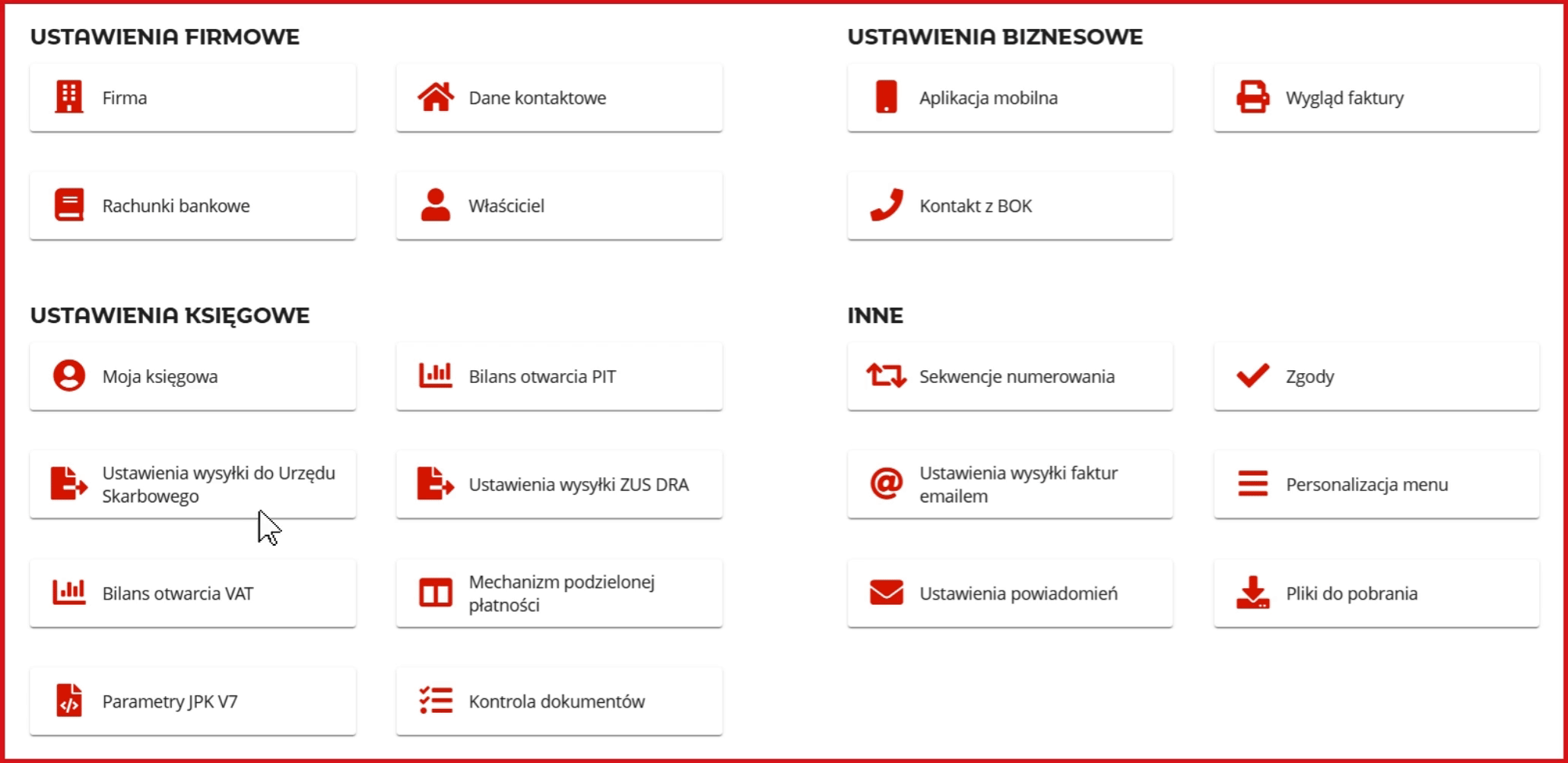 Przejść do zakładki Ustawienia/Ustawienia wysyłki plików do Urzędu Skarbowego.