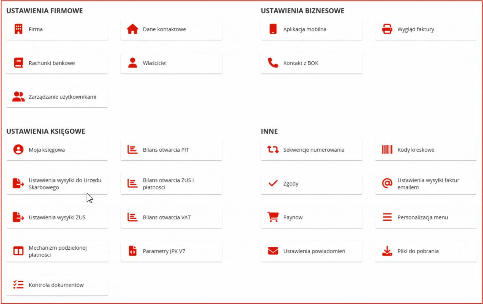 W tym celu należy zalogować się na konto firmy i w prawym górnym rogu ekranu kliknąć na koło ustawień.