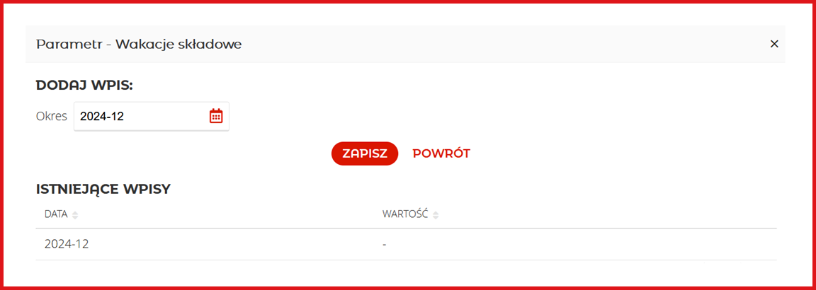 W parametrze należy określić miesiąc, w którym zwolnienie ma obowiązywać.