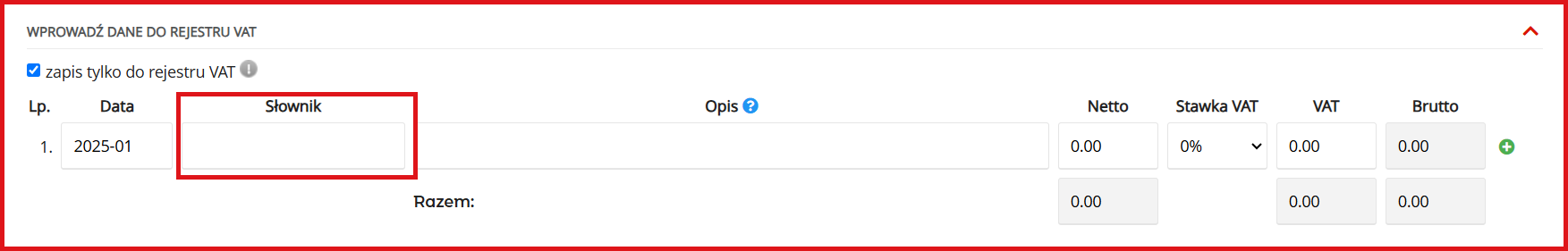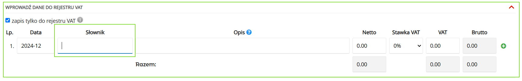 5. Zaznaczenie pola Zapis tylko do rejestru VAT równoznaczne jest z wprowadzeniem kwoty jedynie do rejestru/deklaracji VAT, z pominięciem KPiR.