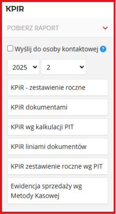 Po wprowadzeniu tego parametru w zakładce Księgowość/KPIR lub Księgowość/Ryczałt pojawi się dodatkowo nowa ewidencja dotycząca dokumentów objętych metodą kasową: