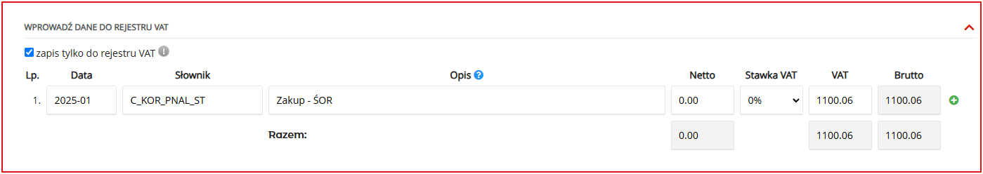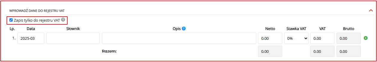 5. Wybrać Wprowadź dane tylko do rejestru VAT;
