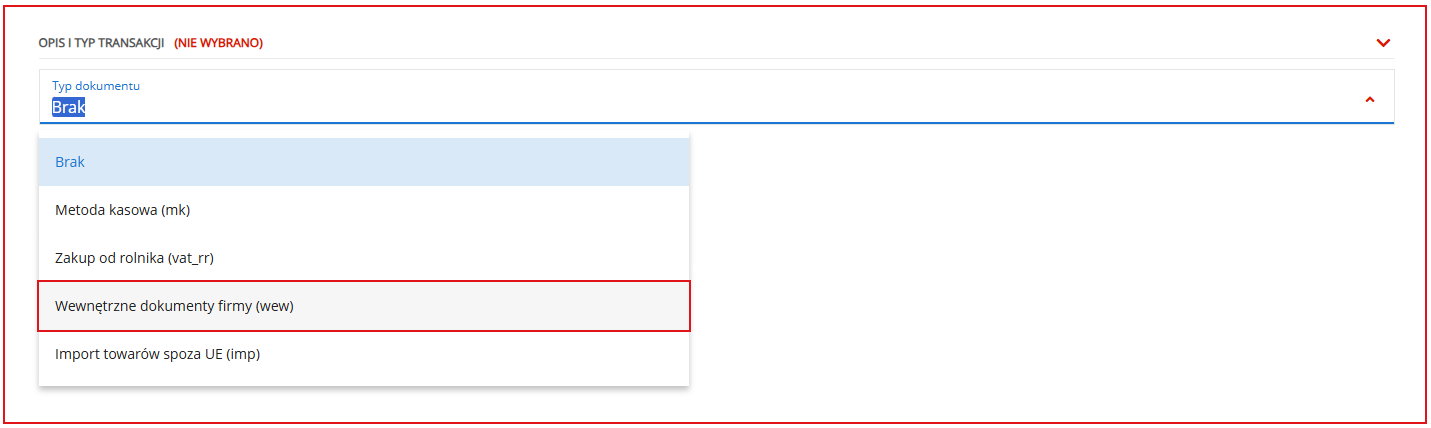 7. Jako typ dokumentu wybrać Wewnętrzne dokumenty firmy (wew);