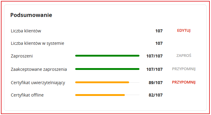 - Certyfikat offline - liczba klientów, którzy wgrali certyfikat offline.