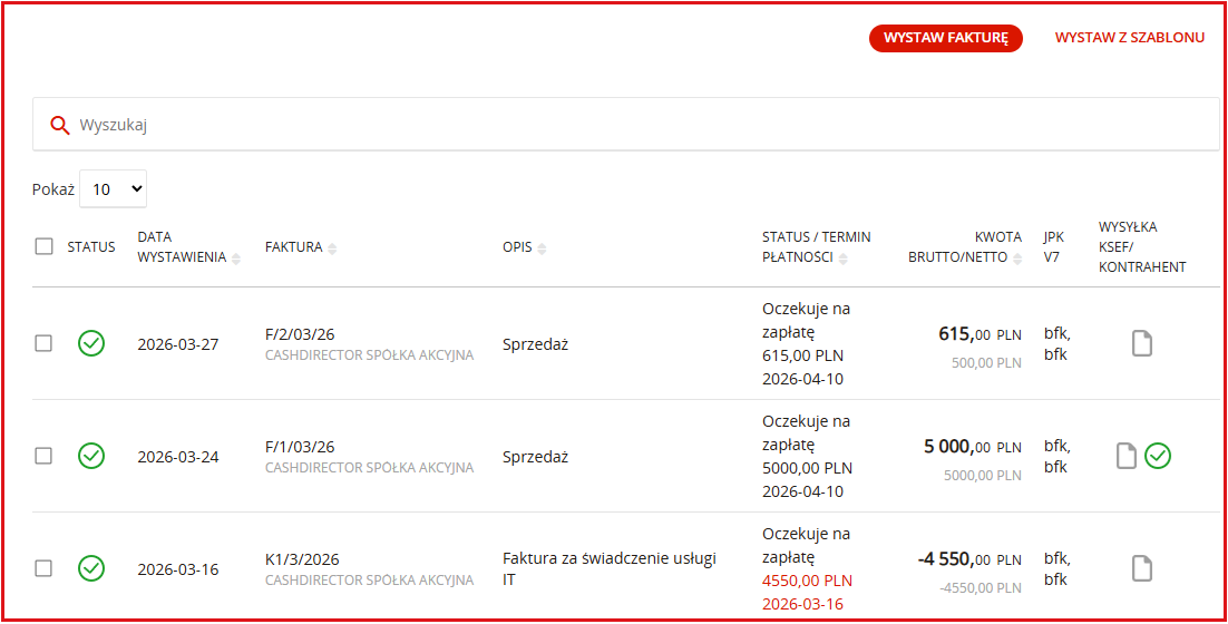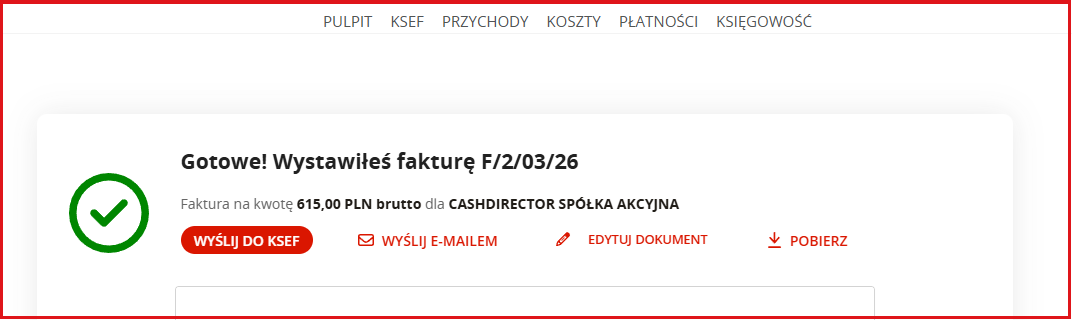 Po kliknięciu opcji Wyślij do KSeF System automatycznie aktualizuje status dokumentu w kolumnie KSeF.